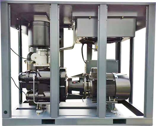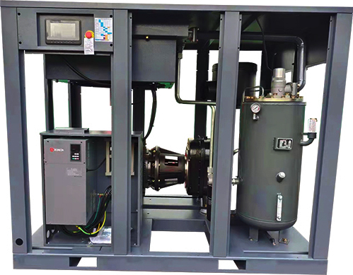 La máquina de compresión y tornillo de alta eficiencia es una relación de baja presión, un mayor grado de fuga de menor volumen, para mejorar la eficiencia energética. El núcleo es la compresión de dos niveles del compresor de aire de tornillo de inyección con la misma potencia que la compresión de una sola etapa de el compresor de aire de tornillo de inyección y más 12%-23% de volumen de aire.