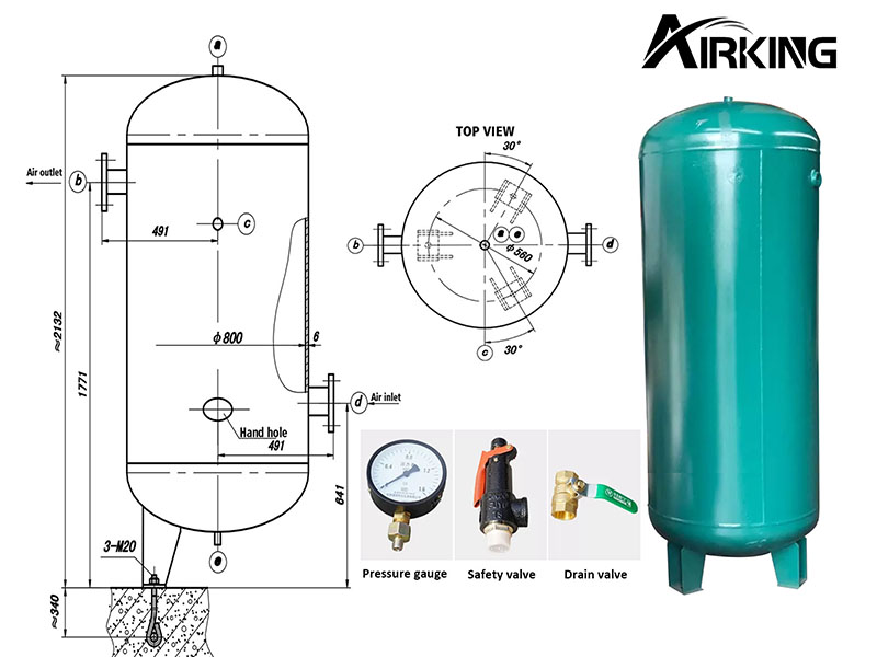 Los tanques de almacenamiento de aire pueden almacenar una cierta cantidad de gas y la presión del aire de salida es relativamente estable y, al mismo tiempo, se puede reducir el recorrido del aire. La temperatura en el medio elimina una parte de agua, polvo e impurezas. El tanque de almacenamiento de aire utiliza materiales originales como materia prima y funciona con tecnología de soldadura automática.
