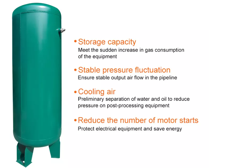 El tanque de almacenamiento de aire puede evitar la molestia de abrir el sistema del compresor con solo unos segundos de aire. Esto reduce el costo de usar un compresor. También se han reducido los costes de uso y mantenimiento eléctrico. Luego, a medida que aumenta la cantidad de uso, se puede almacenar aire.